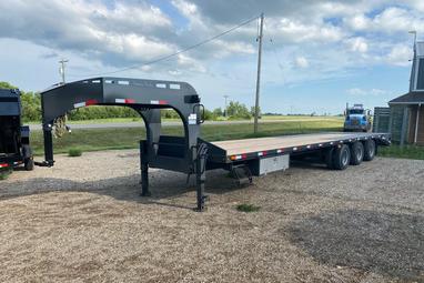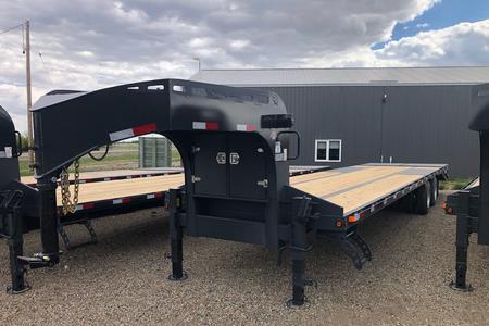 - Spare tire holder on enclosed area above gooseneck/open toolbox between gooseneck uprights